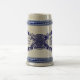 Este é um design original para honrar o reino dos Países Baixos. Eu sou da herança holandesa e pensado lhe seja interessante projetar uma caneca de cerveja no estilo azul de delft que os holandeses fazem tão bem. As flores e a disposição dos quadros foram projetadas por mim. A brasão é "para fora" uma versão azulada da brasão holandesa. A expressão no reverso é o reino da divisa nacional holandesa. Esperança você gosta d! Aprecie a vida! Riso muito!
