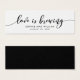 Este mini cartão de na moda com as palavras "o amor está se formando" em um roteiro preto faz uma etiqueta de favor de casamento excelente para seus presentes de favoritos de casamento. Deixe o lado traseiro preto ou mude-o para branco (clique em personalizar). É fácil personalizar; basta substituir o texto do marcador de posição para adicionar suas próprias informações. Para obter mais opções, como alterar a fonte, o tamanho do texto ou o espaçamento entre letras, clique no botão "Personalizar". *Observe que a Marca d'água do Zazzle que aparece na visualização de zoom NÃO aparecerá no produto impresso final. © Rosewood e Citrus