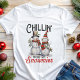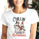 Celebre a temporada de festas com esta divertida e festiva camiseta de Natal "Chillin' with My Snowmies"! Com dois adoráveis bonecos de neve vestidos com cachecóis e chapéus, este design caprichoso é perfeito para espalhar alegria natalina. Seja você passando o tempo com amigos ou participando de uma festa de Natal, esta camiseta adiciona um toque divertido ao seu guarda-roupa de Natal. É também um ótimo presente para os amantes de bonecos de neve e aqueles que apreciam um pouco de humor invernal!