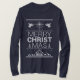 Pessoalmente, hesitaria em chamar isto de suéter "feio"... No entanto, quando você é convidado para um "Festa de Suéter de Natal Feio", aqui está uma solução maravilhosa para nós, cristãos. Nó branco escandinavo em azul profundo clássico. Olhe de perto para a design - eu imitei o aspecto de tricô tão perto quanto o design permitido e - dependendo do produto que você escolher - ele pode realmente parecer que tem sido tricô. Dizemos sempre "Feliz Natal", mas esquecemo-nos da origem das palavras. Este design original conta a história num elegante e tão elegante olhar de 'suéter feio'. Mostre seu espírito de Natal. Este design, branco em azul... é um clássico. Mas nós projetamos variações. Temos esta design sobre vermelho escandinavo, cinza elegante e preto, é claro. Há até uma versão colorida deste design a preto; um design diferente - mais caligráfico e uma variação de fundo de malha - basta verificar nossa loja para vê-los todos. E ter um "Mas Cristo Feliz".