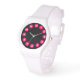 Uma face do relógio de na moda com os números colocados pontos de cor circular dentro em cada hora. Também disponível em outras cores.