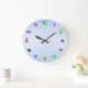 Relógio de Parede com números retorcidos coloridos e fundo de gradiente.