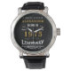 Um relógio único personalizado para aquele aniversariante especial a fazer 50 anos ou presente de aposentadoria. Adicione o nome a este design preto, branco e ouro do estilo retrorreflector vintage para um presente personalizado. Edite facilmente o nome e o ano com o modelo fornecido. Um presente personalizado maravilhoso para uma ocasião especial. Mais presentes e suprimentos de festas para a festa de marco disponível no design "Legendário" da loja.