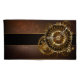 Relógios antigos e fantásticos com engrenagens de ouro e latão em um fundo marrom e enferrujado. Estilo Steampunk.