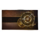 Relógios antigos e fantásticos com engrenagens de ouro e latão em um fundo marrom e enferrujado. Estilo Steampunk.