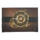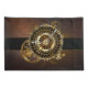Relógios antigos e fantásticos com engrenagens de ouro e latão em um fundo marrom e enferrujado. Estilo Steampunk.