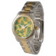 Relógio Abacaxis e Folhas Tropicais Em Dourado