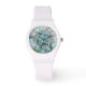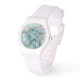 Uma borboleta de fantasia moderna e muito decorativa com cores pastel azuis-esverdeadas harmoniosas. Design para seu único relógio de pulso abstrato e muito mais.