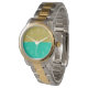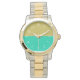 Os relógios estão funcionais e em moda. Ouro Sunset Waters apresenta números brancos clássicos sobre uma face de cor dupla de aqua e ouro. A elegância clássica nunca foi tão evidente.