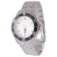 Vocês podem admirar meu desenho de Dia de os namorados e desenho romântico que eu chamo, "Eu te amo", de um coração vermelho e rosa listrado, adicionado ao relógio de pulseira de aço inoxidável deste homem.