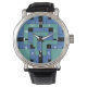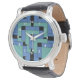 Anexo, homens, mulheres e eWatch de crianças com números brancos. O anexo é um desenho abstrato criado pela Vexenwraith e constituído por turquesas e blocos azuis sobre fundo negro.
