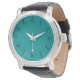 Como qualquer excelente de joias, este relógio com uma face escura de cor aqua, com algarismos pretos, irá com quase qualquer conjunto.