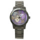Aranha-do-galo feita de ouro e aço com relógios antigos decorados com engrenagens de ouro sobre fundo roxo, listrado, texturizado com lentes e engrenagens de latão. Estilo Steampunk.