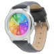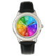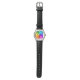 Este relógio personalizado colorido facilita o aprendizado das crianças! Escolha entre uma variedade de fitas de couro genuínas e opções de painel frontal. Nossos números grandes e fáceis de ler são rotulados "White Hours" e "Black Minutos" - as mãos na maioria das opções também são rotuladas de "horas" e "minutos" fazer que é fácil para as crianças aprenderem a usar as mãos no relógio ou a observar o tempo. Excelente para crianças na escola, que amam desenhar ou gostam de aulas de arte, assim como arco-íris! Estojo de aço inoxidável genuíno, movimento do quartzo japonês (preciso e durável), precinta de couro genuína e 30 metros de resistência à água (esfregaços de água, lavagem manual e chuva - NÃO natação nem chá com este relógio ligado).