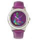 Um design alegre e colorido com uma nota de música 'clef' tripla no brilhante arco-íris saltando cores feitas no estilo de pintura artística, muito legal e moderada e apenas pop no fundo negro. Relógio de pulso moderno fabuloso, presente ideal para um músico ou fã de música.