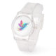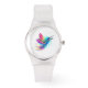 Bela, iridescente, exótica beija-flor voadora sobre fundo branco, pintada com pintura multicolorido, aquarela. Cotovelo-cotovelo.