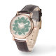 Armbandsklocka Piccolo med ett unikt handmålat motiv av Carita K design, små piccolos i hattar i grönt och beige. Klockan är designad för Zazzle och du hittar den bara här i vår butik.
