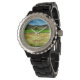 RELÓGIO ÁRVORE SOLITÁRIA NO CAMPO DO FLOR AMARELO VERDE