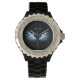 Relógio Asas Anjos Azuis Brilhantes em fundo preto