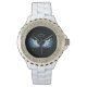 Relógio Asas Anjos Azuis Brilhantes em fundo preto