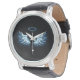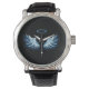 Relógio Asas Anjos Azuis Brilhantes em fundo preto
