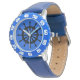 A roda do navio preto. Cor de fundo na face escolhida para coordenar com o azul de banda e discagem.