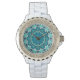 Relógio Azul Aqua Mandala Rosette Retro Hippie