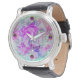 RELÓGIO AZUL TEAL ABSTRATO,ONDAS ROSA,BRILHOS,GEMA RÓSEA