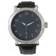 Você mostrará bom gosto vestindo este relógio de face azul e cor de laranja.
