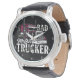 This bold wall clock proudly displays the "Bad Mother Trucker" attitude. Against a black background with a striking pink/purple rim, it features a pink/purple semi-truck with a skull detail. The prominent text "BAD Mother TRUCKER" expresses a powerful and confident statement for any driver who owns their tough profession. The design tool can also be used to add custom text if you want your name or company on this clock. You can customize the color of the frame to any color you desire by going into the design tool.