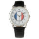 Relógio Bandeira da França Coroa de Couro Negro