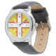 Assista com design com uma bandeira do condado histórico de Dorset, Inglaterra, Excelente-Bretanha; bandeira amarela com uma cruz branca com uma fronteira vermelha
