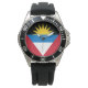 Esta design apresenta a bandeira nacional de Antígua e Barbuda, que é um Estado soberano insular nas Índias Ocidentais nas Américas, que se situa entre o Mar Caribe e o Oceano Atlântico. É constituída por duas grandes ilhas, Antígua e Barbuda, e por um conjunto de ilhas menores (incluindo Excelente Bird, Green, Guiana, Long, Maiden, Prickly Pear, ilhas York e, mais adiante, a ilha de Redonda). A capital e maior porto e cidade são Ruas. John's em Antígua, enquanto Codrington é a maior cidade em Barbuda.
