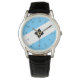 Assista com a bandeira da cidade de Madison, Wisconsin; bandeira azul clara e branca com círculo preto e amarelo no centro