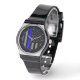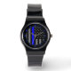 Um gráfico personalizado de design de bandeira americana simbólico da Linha Azul fina em um relógio. Uma ideia de presente de excelente para encontros, celebrações memoriais e ocasiões de lembrança. Use o link "Entre em contato com este Designer" para entrar em contato conosco com suas solicitações especiais de design ou para obter assistência com qualquer necessidade do seu projeto de personalização.