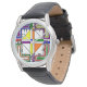 Este relógio masculino tem um design Bauhaus de linhas, triângulos, diamantes e fazeres quadrados, um olhar colorido em cores primárias e secundárias.