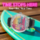 This round wall clock embodies a relaxed, tropical theme with a vibrant, striped sunset background in shades of orange, yellow, pink, and blue. Silhouetted palm trees, a beach umbrella, and a lounge chair complete the serene island scene. The words "Beach Vibes" are prominently displayed in a playful font, making this clock a perfect addition for beach lovers or anyone seeking a summery ambiance.
