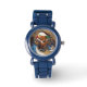 Adicione um splash de personalidade ao seu pulso com um relógio de natureza selvagem da coleção walkswith nature™ Assista à coleção Birdie™. Um presumível fugitivo de fazenda de hobby, este homem adulto Pato de Mandarim foi visto na companhia dos Patos de Madeira da Piper Spit. Ele chama Burnaby Lake para casa desde que foi visto pela primeira vez em 2018. O seu espantoso pastiche de sopros, paleta de cores deslumbrante e "barbatanas" fazem dele um sonho para fotografar. A Mãe Natureza não deixou nada para a imaginação do artista quando fez esta criatura! Fotografado no lago de Burnaby no início de março de 2020. Baseado na fotografia original de W.H. Sim. Todos os Direitos Reservados. Mais informações em zazzle.com/walkswithnature