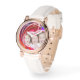 Um elegante relógio de ouro rosa com um belo design abstrato liquefeito vermelho, azul e rosa. Este relógio bonito vem com uma pulseira branca elegante. O rosto do relógio tem uma mensagem de texto e uma foto. O texto e as fotos são personalizáveis e podem ser facilmente personalizados para ajustado das suas necessidades. Este relógio único e bonito é o melhor presente para sua esposa, namorada e mãe. presente de excelente para aniversário, casamento, aniversário, feriado, Dia do Namorados, Dia das Mães, e para você! Uma peça de joias verdadeiramente única, que fará qualquer mulher se sentir amada e especial!