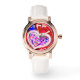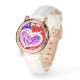Um elegante relógio de ouro rosa com um belo design abstrato rosa, vermelho e azul liquificado. Este relógio bonito vem com uma pulseira branca elegante. O rosto do relógio tem uma mensagem de texto e 4 fotos. O texto e as fotos são personalizáveis e podem ser facilmente personalizados para ajustado das suas necessidades. Este relógio único e bonito é o melhor presente para sua esposa, namorada e mãe. presente de excelente para aniversário, casamento, aniversário, feriado, Dia do Namorados, Dia das Mães, e para você! Uma peça de joias verdadeiramente única, que fará qualquer mulher se sentir amada e especial!