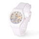 Um relógio com uma fotografia de um lindo cavalo branco. Atravessando um campo coberto de neve. Majestosa e bonita.