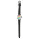 Um relógio personalizado com fundo aquoso com cores do arco-íris.