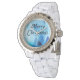 Belo relógio de pedra para a época de Natal. Este relógio de pulso personalizado com flocos de neve brancos caindo de um céu azul mágico. Presente de Natal perfeito para seus entes queridos