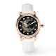 Um relógio com uma bela ilustração. Um rosto feminino na lua rodeado de flores.