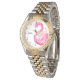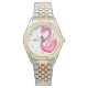 Bela, flamingo, pássaro tropical, vida selvagem, moderno, relógio de cor da água da moda. Personalize-o com o seu nome.