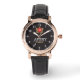 Command attention with this black and gold personalized watch, designed for those who appreciate classic luxury and regal style. The deep black dial features a majestic royal crest monogram with gold wings and a crown, paired beautifully with a rose gold bezel and white crocodile-textured leather strap. This timepiece perfectly balances power, elegance, and individuality.