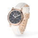 black floral monogram watch, personalized initials wristwatch, elegant vintage couple’s watch, romantic anniversary gift, custom wedding keepsake, timeless monogrammed watch, floral typography wristwatch, luxury couple’s timepiece, sentimental love gift, bespoke wedding watch