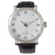 Introducing a sophisticated, contemporary wristwatch adorned with sleek black Roman numerals against a pristine white backdrop, complete with the option to personalize with your own name.