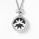 Torre de sol brilhante, estrela de Deco, preto e branco. Design abstrato minimalista fala sobre o entrelaçamento universal da vida. Lembrança de yin yang. Clássico e legal.