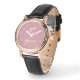 Embrace timeless femininity with this blush pink and gold personalized watch, designed to blend elegance, grace, and individuality. The soft pink dial radiates charm, accentuated by a rose gold bezel and refined white leather strap. The custom monogram crest adds a luxurious, personalized touch — making this watch a perfect accessory for any stylish woman.